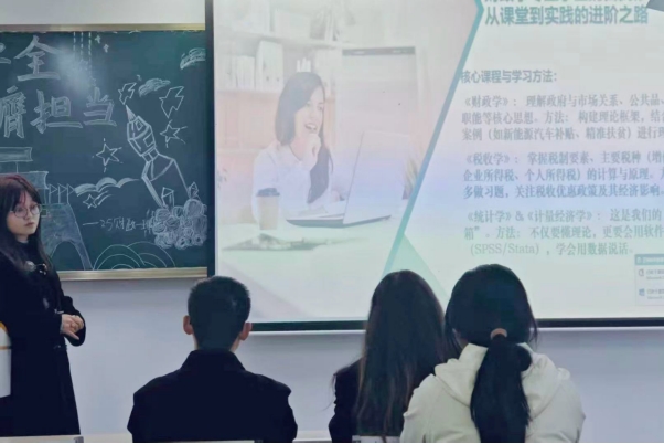 会议伊始,同学们分享了大二专业课学习过程中遇到的困惑。郭雁飞老师结合大二课程特点,系统梳理了重点知识,讲解了如何在知网高效检索相关文献以把握财税理论前沿动态,并推荐了多本财税领域的经典读物与专业书籍。