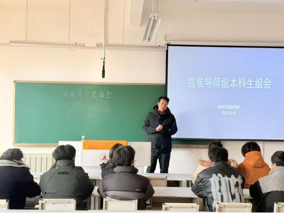 会议最后,屈准导师对本学期同学们的学习与生活情况进行了系统回顾,针对大家在学习方法、时间管理和发展规划中存在的共性与个性问题逐一进行分析并提出改进建议,进一步凝聚了导师组的学习共识,增强了团队的学习氛围与向心力。此次小组会议内容务实、导向明确,不仅为同学们注入了新的学习动力,也为后续期末备考和长远发展指明了方向。屈准导师组将持续深化导师制育人功能,坚守立德树人初心,着力培养一批有理想、有目标、有能力、有担当的新时代财税青年。