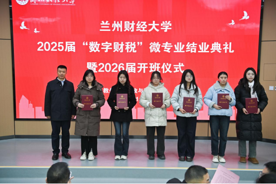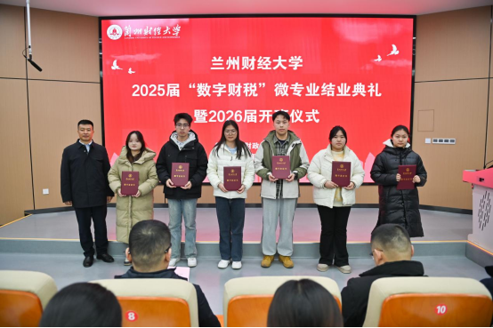 教务处处长党建宁宣读了《关于授予“数字财税”微专业结业证书的决定》,祝贺陈俊瑾等39名“数字财税”微专业同学在2025年3月至12月期间修完教学计划的全部课程,顺利结业。