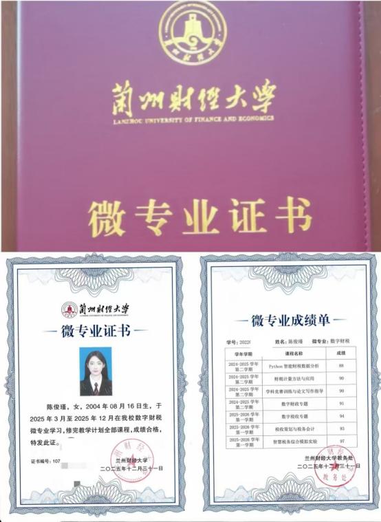 作为学校首批立项建设的微专业,“数字财税”微专业依托财政与税务学院的财政学和税收学专业,融合会计学院的会计学专业和信息工程与人工智能学院的人工智能专业,旨在培养践行社会主义核心价值观,具备扎实财税专业知识、掌握财务会计、数据统计和人工智能分析技术,富有强烈社会责任感、公共意识、国际视野和创新精神,具有从事数字财税、数字经济等专业领域从业能力和继续深造潜力的应用型、智慧型、复合型财税专业人才。目前已顺利完成两届共69名同学的培养任务,其中,有43名同学获得省级以上竞赛奖项、参与教师课题研究并发表学术论文,2名同学成功推免到兰州大学继续深造,培养成效较为显著,产生了一定的社会影响力。