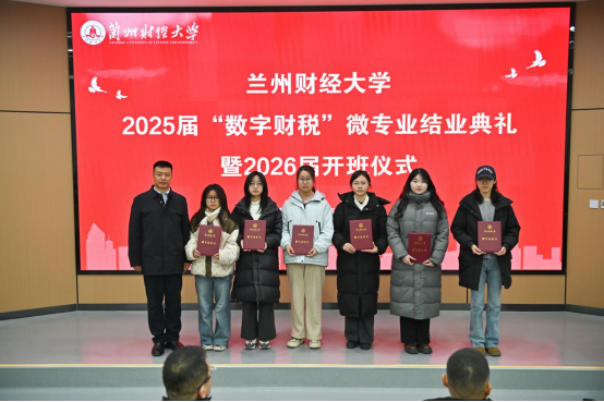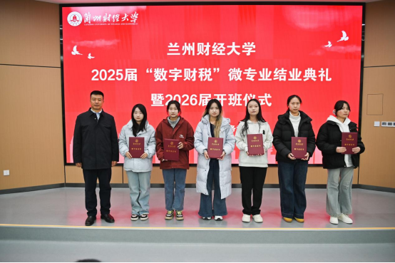 2026年1月8日下午,财政与税务学院在知行楼104报告厅举办2025届“数字财税”微专业结业典礼暨2026届开班仪式。兰州财经大学党委常委、副校长南星恒,教务处处长党建宁,财政与税务学院党委书记柳江,“数字财税”微专业全体师生代表共80余人参加了活动。活动由财政与税务学院院长李永海主持。