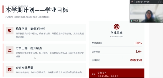 指导教师在总结中指出,大学学习需以“持续性”和“主动性”为关键,强调挂科对学业发展的严重影响,要求同学们“以目标为导向,以行动为支撑”。张老师特别建议:一要关注全国两会等时事热点,将个人成长融入国家教育、科技、人才发展战略;二要注重学习方法优化,通过“小目标积累”提升学习效率;三要积极参与科研与社会实践,在知行合一中增强综合素质。张老师勉励全体成员:“目标清晰则方向明,行动扎实则未来可期。”