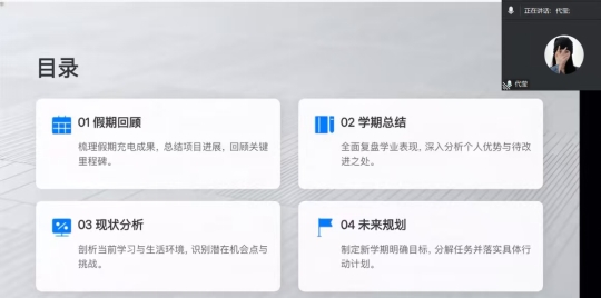 2026年3月7日晚,张文斌老师在北京通过腾讯会议平台召开2026年春季学期小组会议。会议以“总结反思、明确目标、规划行动”为主题,通过个人汇报、集体研讨与教师指导相结合的方式,全面复盘上学期学业表现,部署新学期学习计划。小组全体成员及指导教师参会,会议由组长何敏同学主持。