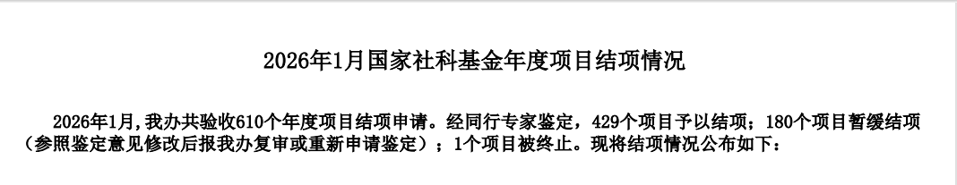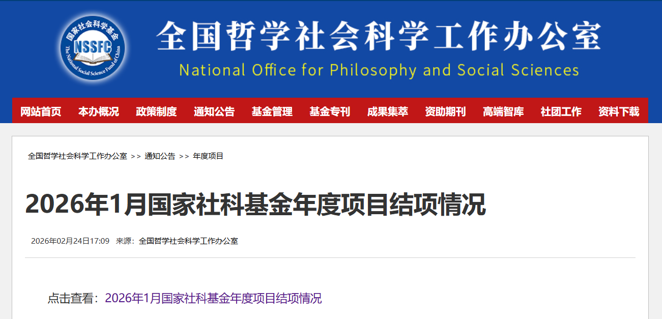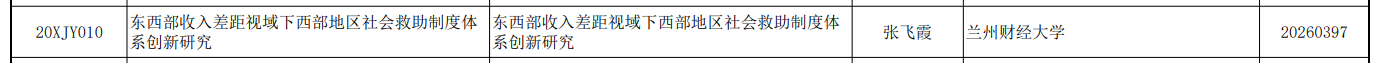 2026年2月24日,全国哲学社会科学工作办公室发布2026年1月国家社科基金项目结项通知,我院张飞霞教授主持的《东西部收入差距视域下西部地区社会救助制度体系创新研究》(项目编号:20XJY010)顺利通过验收,这是学院成立以来首个结项的国家级科研项目。
