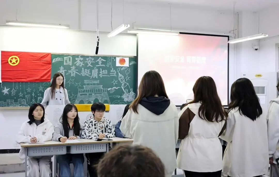 财政学一班、财政学二班、税收学三班以“国家安全,青春挺膺”为主题开展活动,现场氛围热烈,表演高潮迭起:短剧生动演绎生态安全场景,朗诵传递国防共识,合唱呼吁“国家安全,人人有责”。本次活动旨在帮助同学们深化对国防含义的理解,引导大家以实际行动为祖国国防安全屏障建设贡献力量,将爱国情转化为护国情,主动扛起新时代团员青年护国安邦的使命。