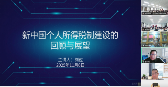 2025年11月6日,财政与税务学院邀请中国法学会财税法学研究会副会长、研究员刘佐,为我院师生作题为《新中国个人所得税制度建设的回顾与展望》的专题讲座。学院院长李永海、副院长马军和部分教师线上参会,税收系教师王彦平、张帆和2024级、2025级全体研究生在博源楼401共同聆听了此次讲座,讲座由李永海院长主持。