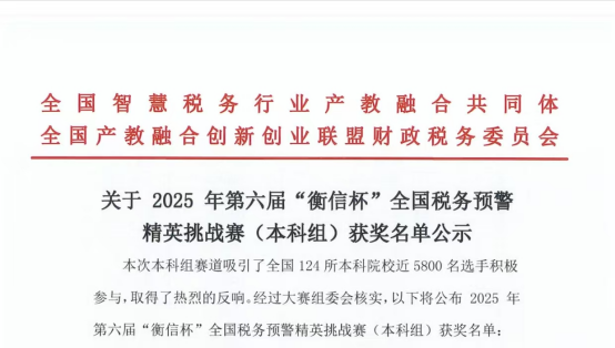此次获奖不仅是对我院税务专业教学成果的肯定,更是对全体师生不懈努力的认可。通过参与此类高水平赛事,学生们得以将理论知识与实际操作相结合,进一步提升综合素质和实战能力。同时,这一成绩也为学院未来在财税领域的教学改革和人才培养提供了宝贵经验,激励着更多学子以赛促学、以学促用,在专业领域不断追求卓越。学院将继续秉持“以学生为中心”的教育理念,深化产教融合,推动税法教育与实践创新,为社会培养更多高素质的税务专业人才。