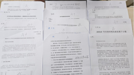 其中,刘亦婷同学的《庆阳市各县区财政收入规模——基于2024年的数据分析》、文晓雅同学的《2025年上半年甘肃省酒泉市经济发展与财政收支分析》、蒋泽同学的《房产税调整背后的税收逻辑》以及张琳浚同学的《从甘肃2024财政结算报告,解锁税收背后的经济密码》等作业表现突出,荣获A+成绩。李永海导师在点评中肯定了全体学生的进步,并表示会后将逐一沟通修改意见,待完善后发布公众号或者进一步优化后投稿发表,让学生的学术成果得到更广泛的展示。