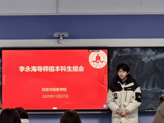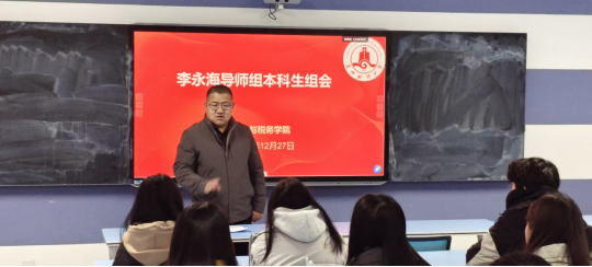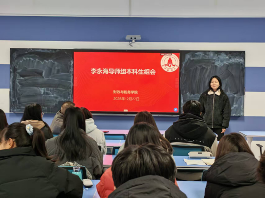 为响应学校“强教学”行动计划,落实财政与税务学院下发的《本科生导师制实施方案(试行)》文件要求,2025年12月27日上午8:30-11:00,李永海导师组本科生组会在笃行楼103教室如期举行,2024级、2025级组内38名本科生齐聚一堂,共话学业成长,明晰发展方向。